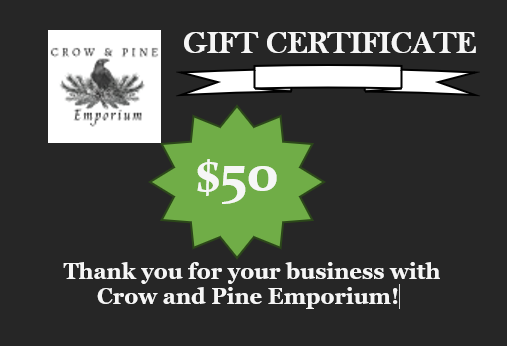 Delight friends and family with the perfect gift – the Crow and Pine Gift Card! Shop with ease, knowing they get to choose the exact item they desire. A great choice for the picky shopper in your life.